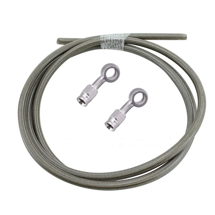 - 5ft of stainless steel -3 braded brake line, clear coated to prevent abrasion on painted/chrome surfaces.