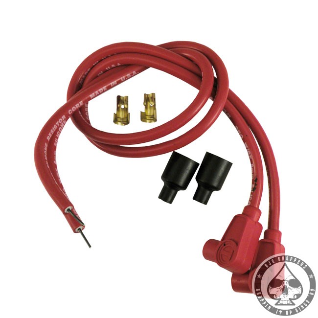 Wire length 24″. Cut to length required. Note: If required, 90° (941256) and 180° (941257) coil boots & terminal connectors are separately available for 99-17 (Twin Cam) style coils.