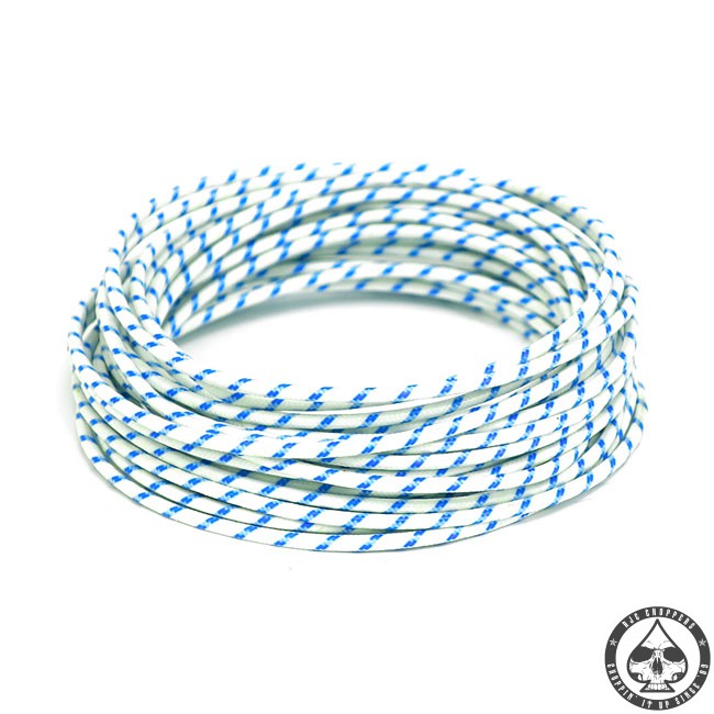 Cloth covered wiring, 25FT, White with blue tracing.