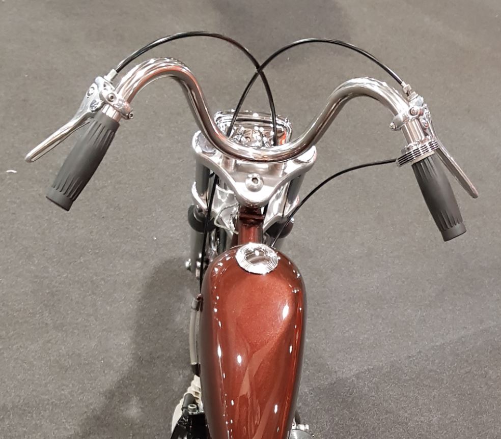 Handlebar risers holes have a different distance (76mm) from standard Harley (89mm), so you will need indipendent risers (check our shop) or a custom welded handlebar.