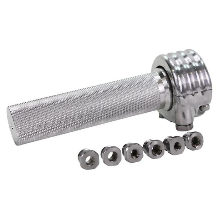 The billet aluminum grip tube is CNC machined with a knurled finish to accept a huge variety of aftermarket rubber grips.