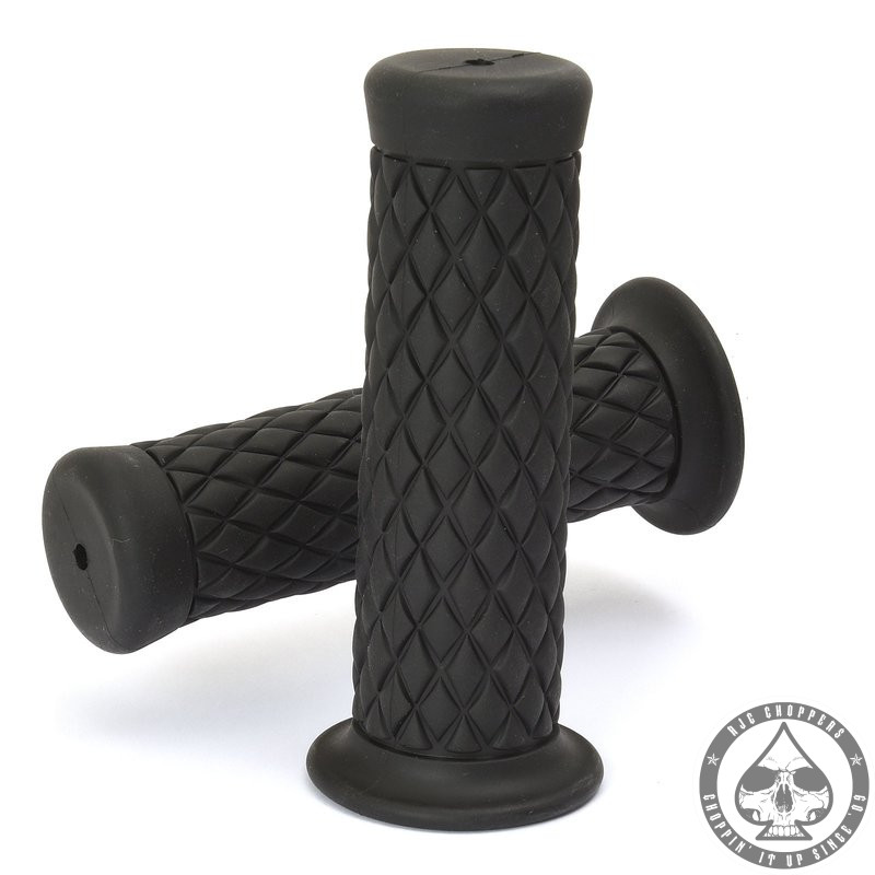 Handlebar grip set made of black hard rubber for motorcycles and choppers with 1″ or 22 mm handlebars.