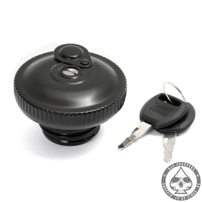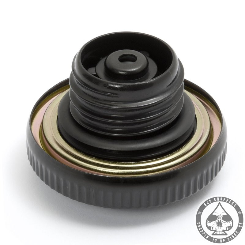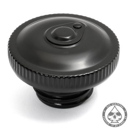 Black gas cap with knurling for Harley-Davidson® Sportster® and Big Twin models from 1996 to 2019.