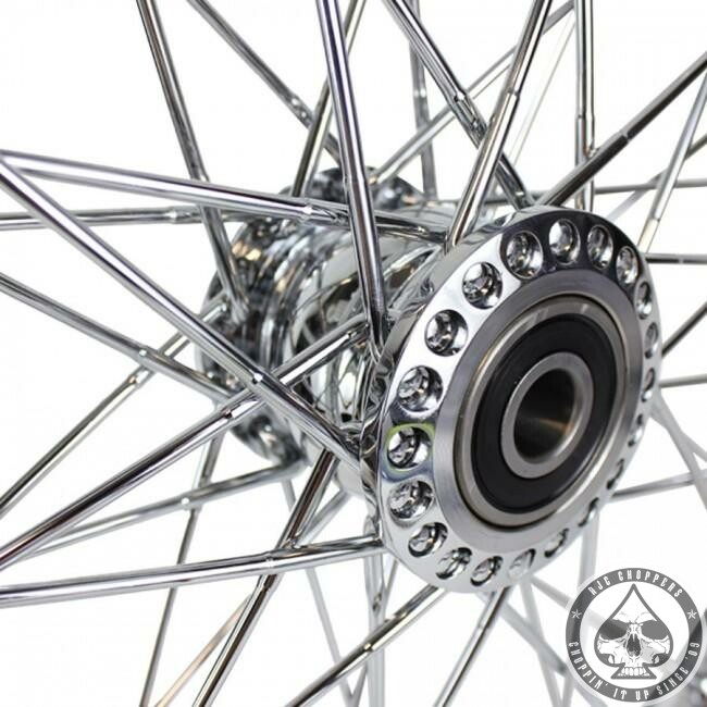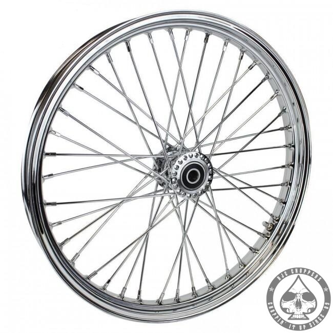 Fully spoked 21″ front wheel, ready for installation to ensure the perfect, clean chopper look.
