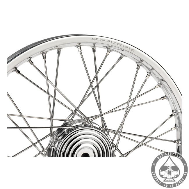 The 40 spokes are stainless steel and the Akront/Morad rim in 1.85 x 21 in a mirror polished finish.