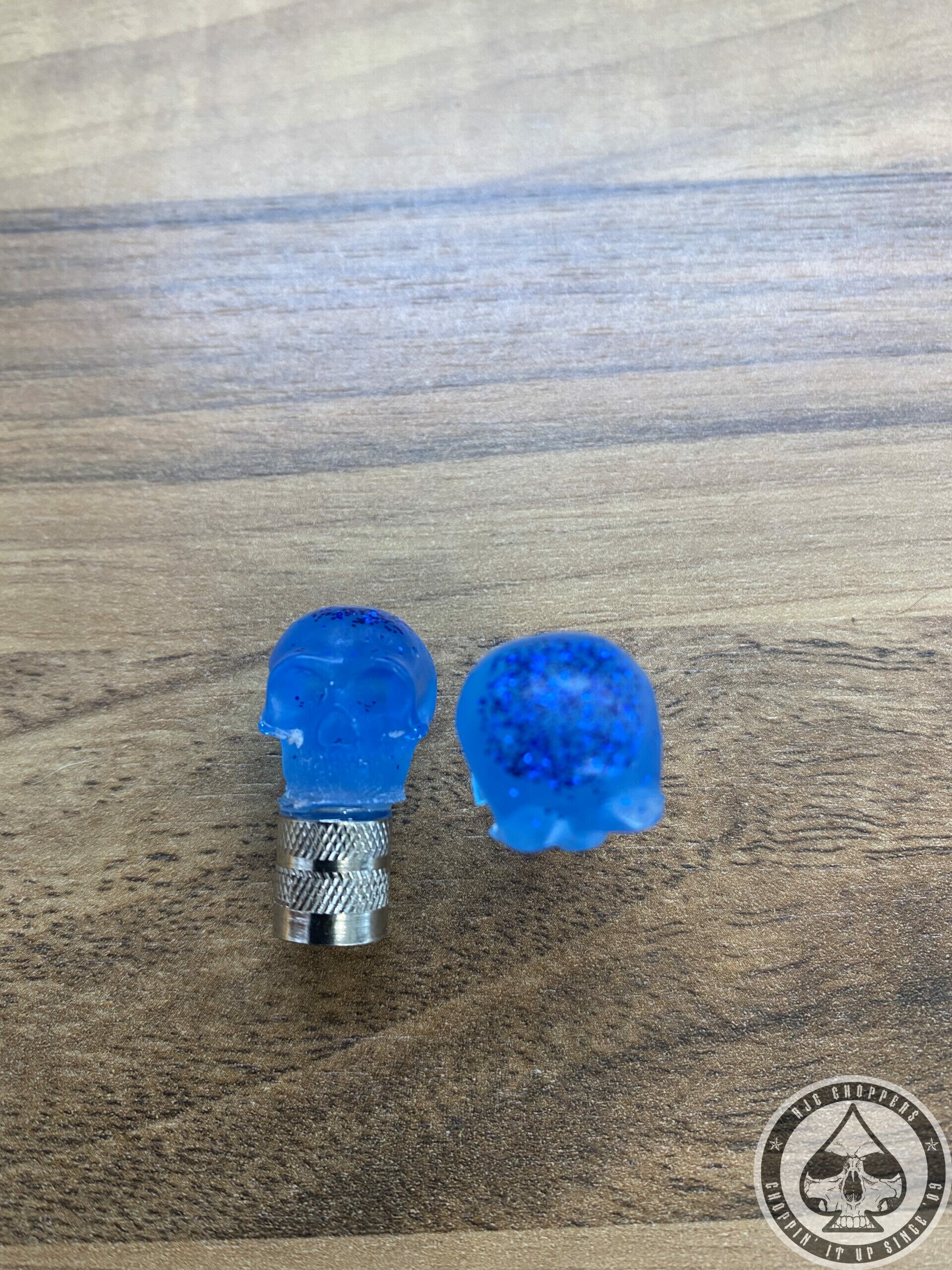 Be the first to review “Valve Caps Skull Resin, Flaked Blue”